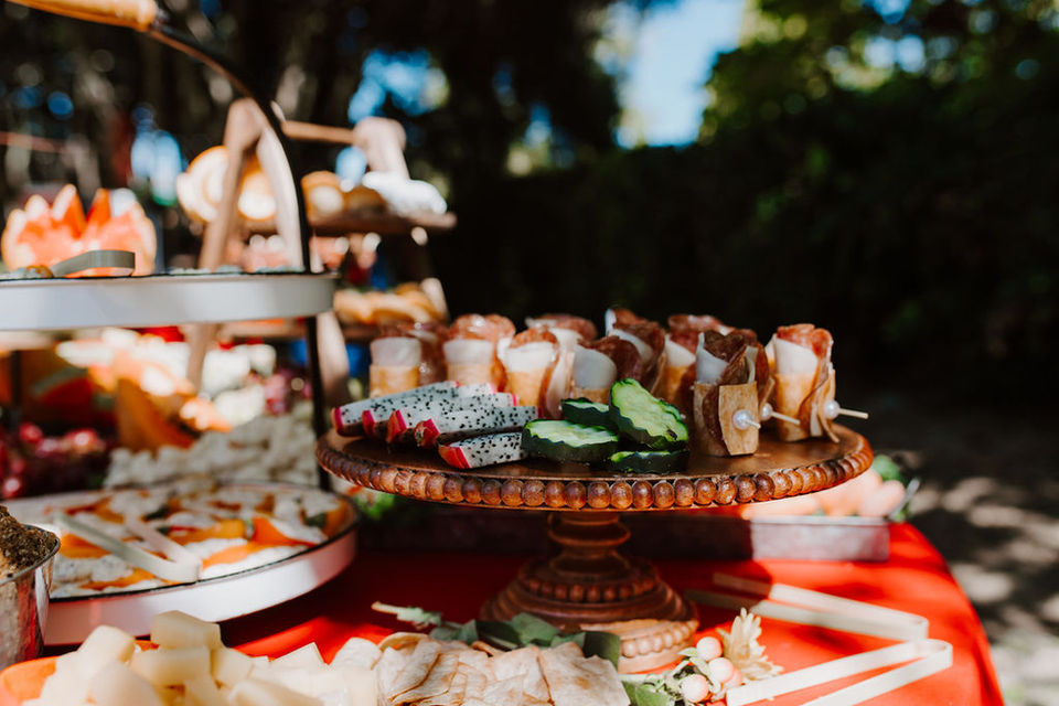 Our comprehensive wedding package includes everything you need for a seamless celebration. Choose from several beautiful sites on the property to have your wedding ceremony. -curated ceremony site -under the willow trees -large wooden stage by pond -cement stage by spiral water feature -pond dock -center of the spiral water feature -inside the main hall. 10 wooden benches to use for seating at the ceremony (seats 4-5 people per bench). An outdoor bar to use as a welcome drink station or apps/dessert bar. It lives in the main hall during off season months. During peak season it lives in the Olive Pit lounge. An indoor reclaimed solar panel bar. This bar lives inside the main hall and is stationary. 7 high top tables to use during your cocktail hour and reception. 5 wooden stools to place around the high top tables. 9 picnic tables - 3 that live by the pond, 3 that live up at the spiral water feature, 1 that lives down in the glamping area, and 2 that are out in the grass area for the tent campers. Outdoor space for a food vendor. With ample power and lighting most vendors can fit perfectly into this space. 2 ADA bathrooms - ladies and mens restrooms. Can accommodate most large gatherings. A wagon for transferring your things to their places. Whether its your load of ice for the bar or your luggage to the glamping area, we have you covered with a wagon to ease in this transition. 1 wine barrel that can be used for your event - decor, tables, cake cutting, etc.